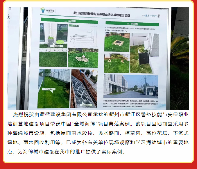 热烈祝贺衢江区警务技能与安保职业培训基地建设项目荣获中国“全域海绵”项目典范