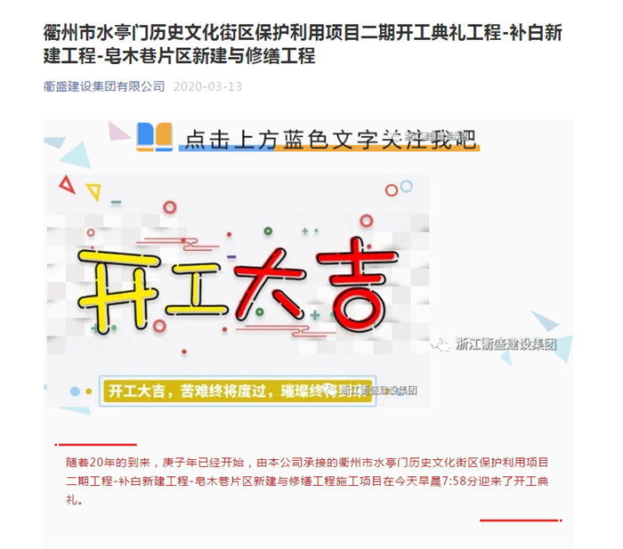 衢州市水亭门历史文化街区保护利用项目二期开工典礼工程-补白新建工程-皂木巷片区新建与修缮工程