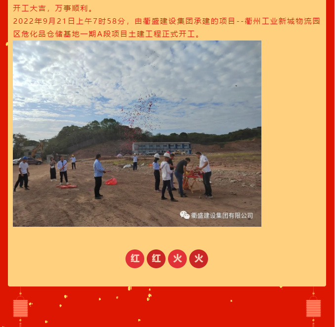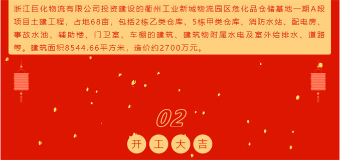 热烈庆祝衢州工业新城物流园区危化品仓储基地一期A段项目土建工程正式开工